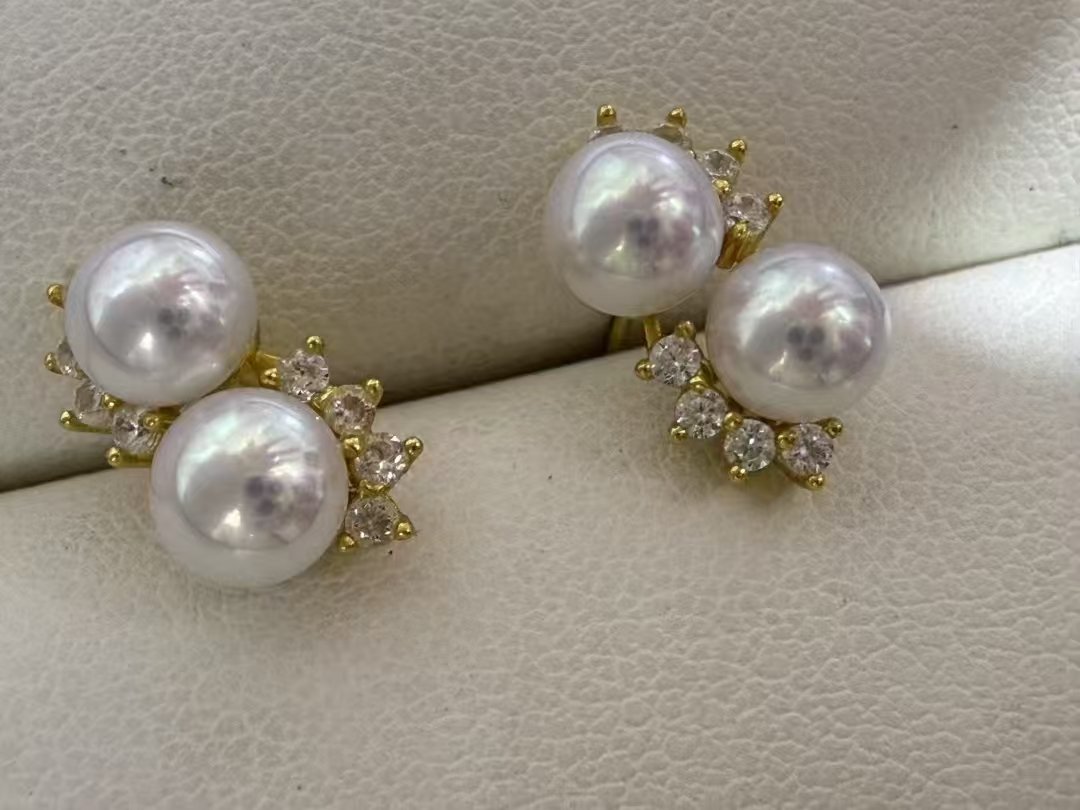 S925 4-5mm Freshwater Pearl With CZ Earrings Studs